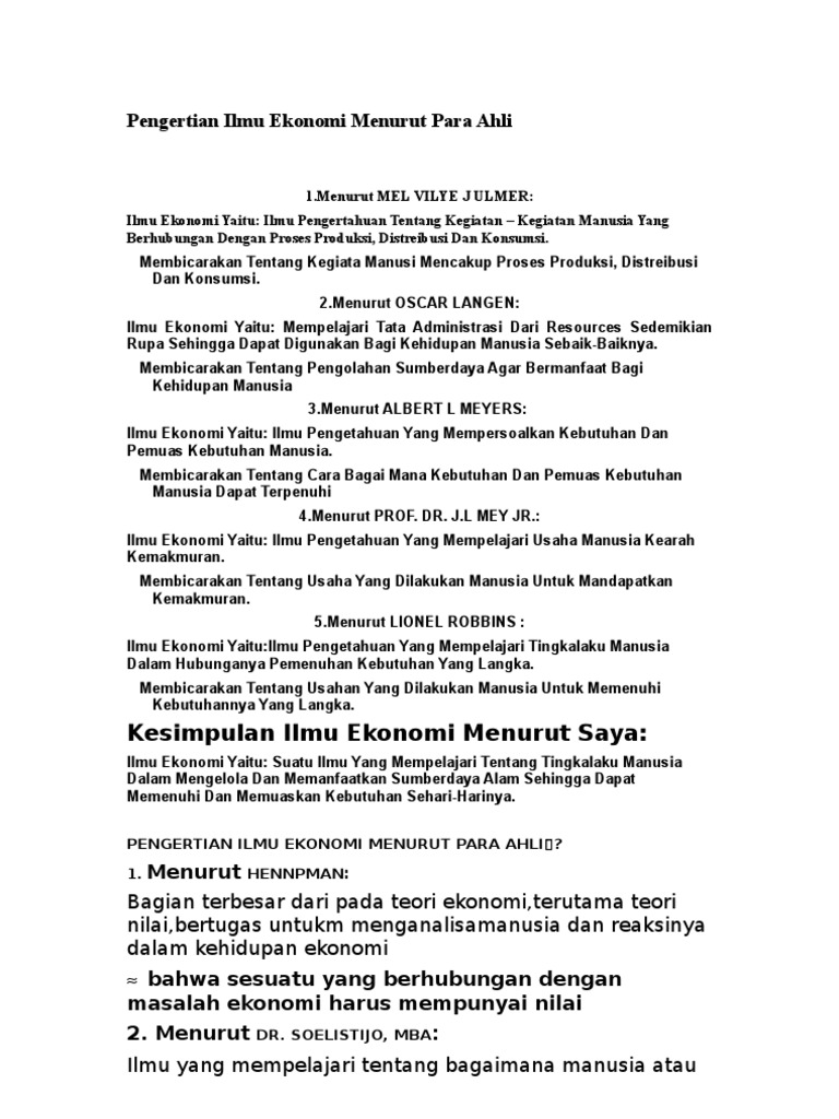 Pengertian Ilmu Ekonomi Pengertian Ilmu Ekonomi Menurut Para Ahli Dari Indonesia Menurut Studocu